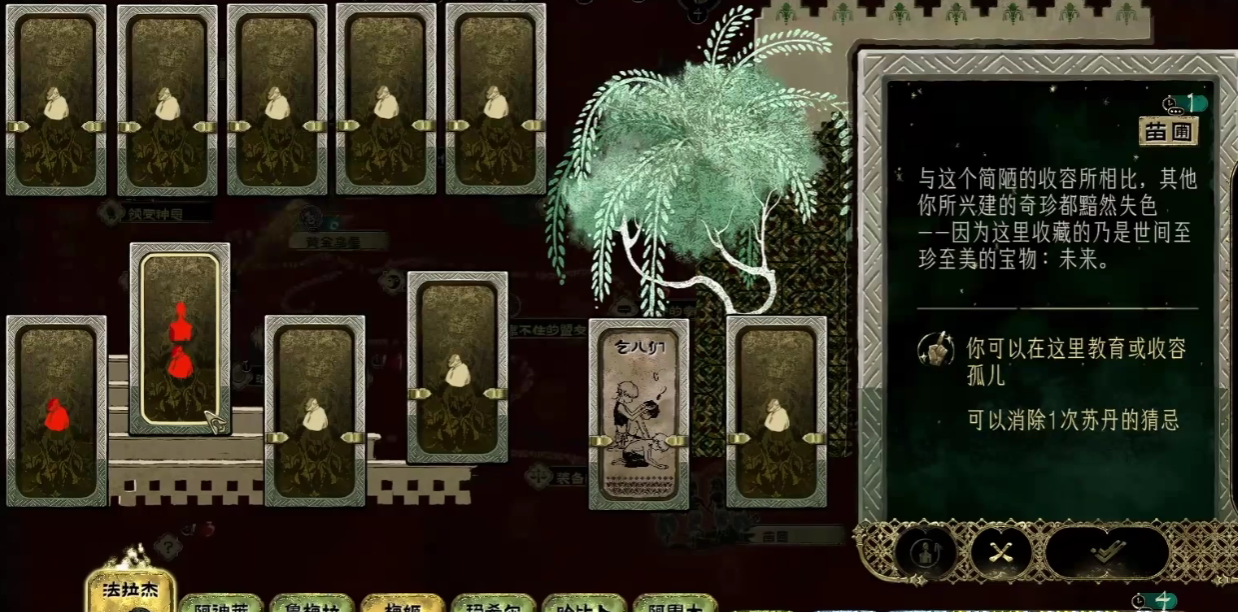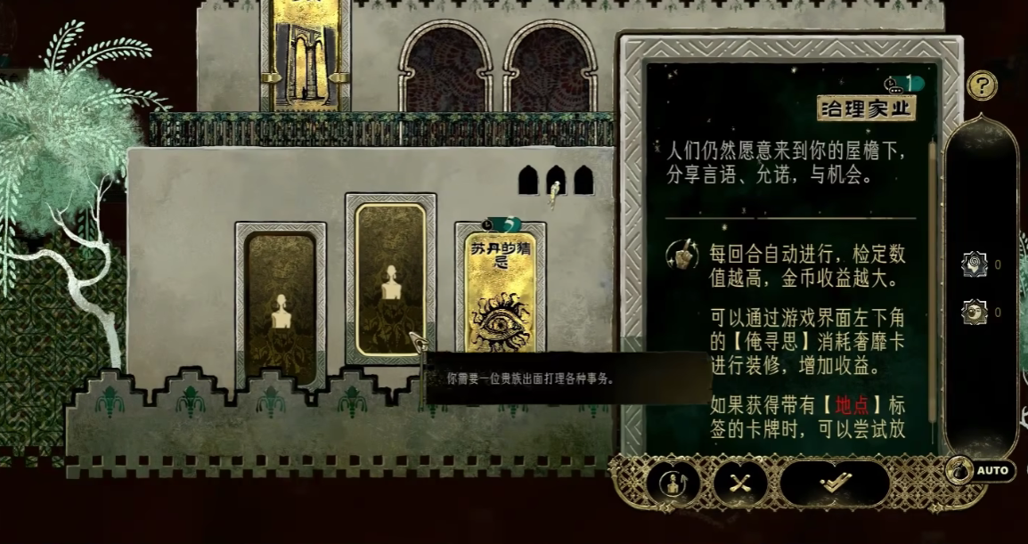 第三种途径是利用治理家业系统。玩家可在执行该行动时插入一张猜忌卡以实现清除效果。虽然这将导致接下来七天内无法通过治理获取金币收益,但相较于其他高风险选项,其负面影响较为可控,适合用于中期稳定局势。