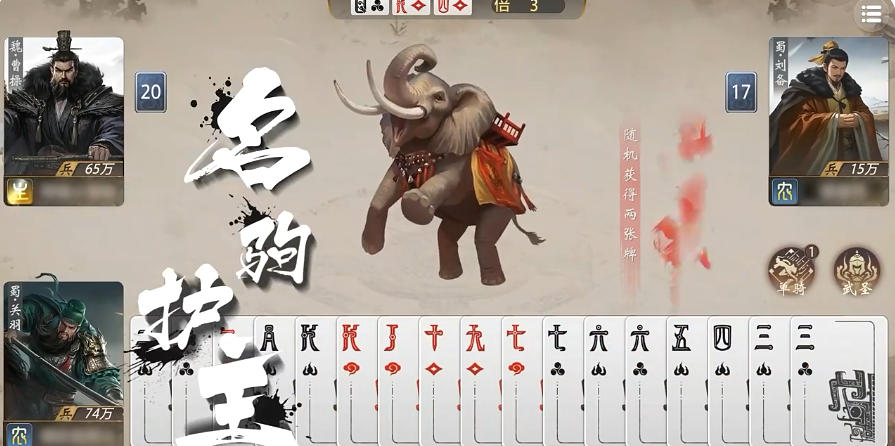 每局比赛由三名玩家参与,其中一人担任类似“地主”的角色,最多可持有三张手牌,双方分属不同阵营。胜负判定标准为哪一方率先出完所有卡牌。虽然形式上与斗地主有相似之处,但加入了大量自定义元素,尤其是武将与功能卡牌的结合设计,构成了游戏的核心策略体系。