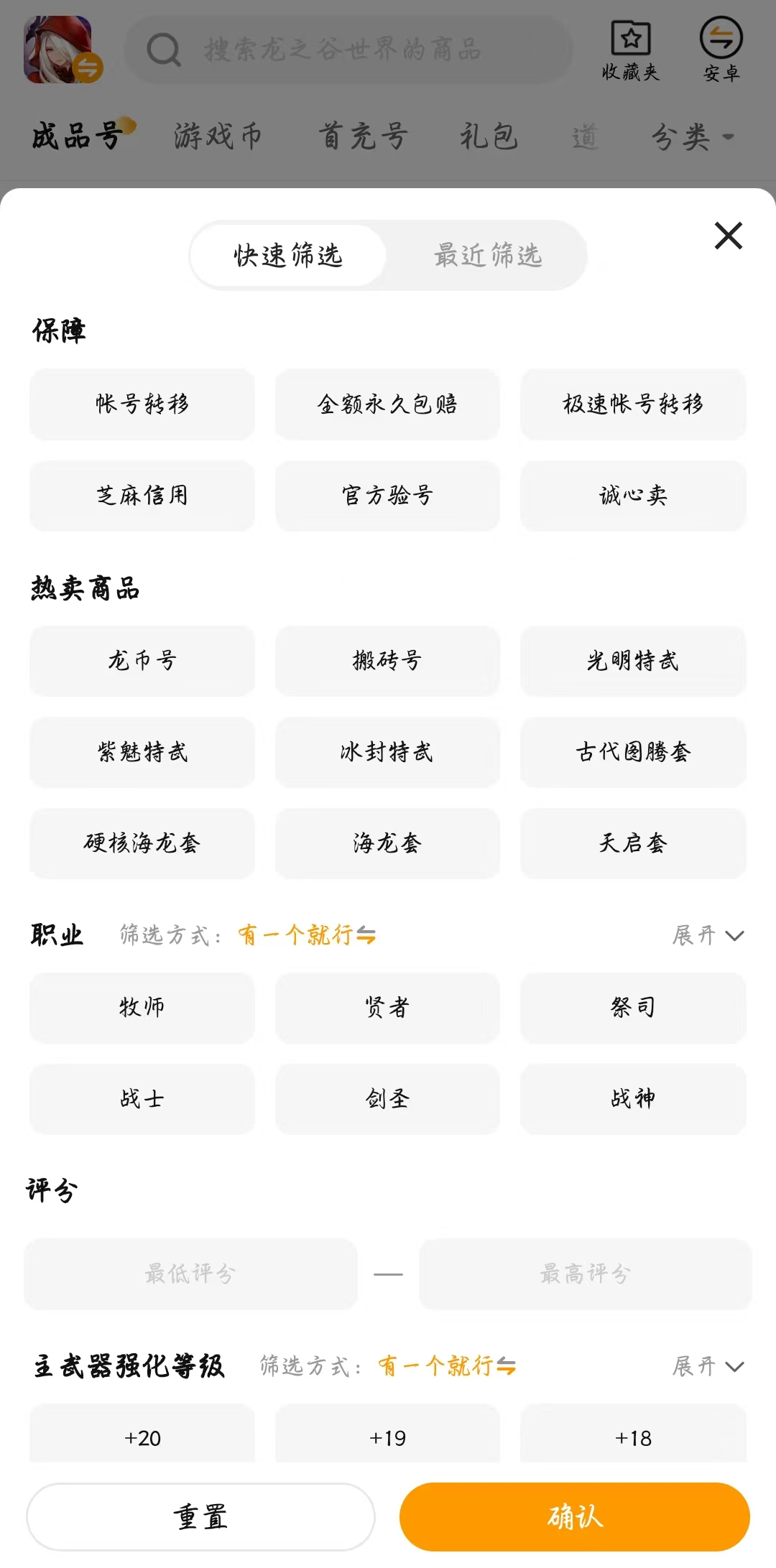 考虑到众多小伙伴的想法,小编给大家找到了一款不仅交易方便,而且十分安全靠谱的平台,链接就放在上面了。拥有庞大的用户群体,无论大家是售卖账号还是购买账号,都会非常快速,而且检索非常方便,如果大家想要购买龙之谷世界账号的话,那么可以根据自己想要的资源进行解锁,快速定位自己感兴趣的账号。