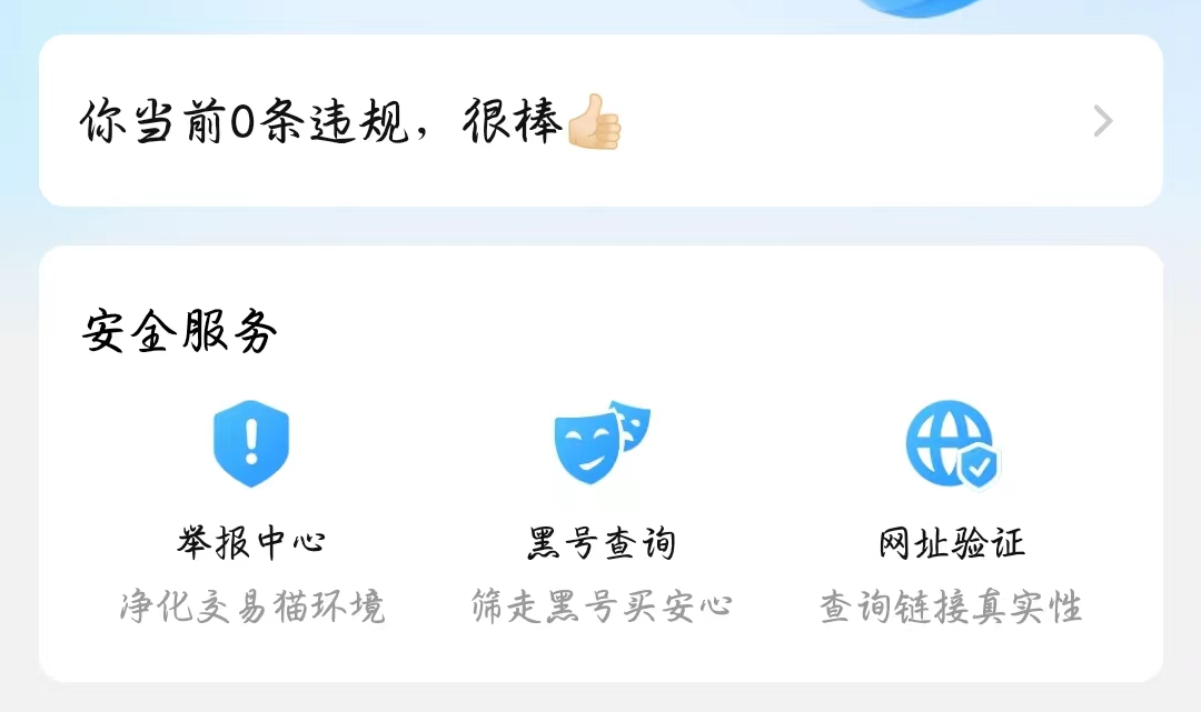 该应用提供了不少维护大家安全的服务,比如首先无论是买家还是卖家都需经过实名认证,并且绑定支付宝才行。其次,平台提供了很多的安全防扎片知识,小伙伴们可了解一番,后续若是在交易过程中遇到什么不符合规范的行为,也可以向平台举报。