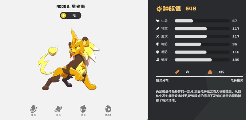 星光狮:可通过在雷霆禁地探索获得。该宠物拥有强大的实战威力,实际技能伤害可提升40%。当等级达到60级时,速度属性可达135点,具备先手优势。战斗中可先使用“咆哮”技能,使敌方物理攻击力下降80%,随后衔接“离子火花”与“扫尾”进行连续输出,形成稳定的压制节奏,适合用于突破高防御敌人。