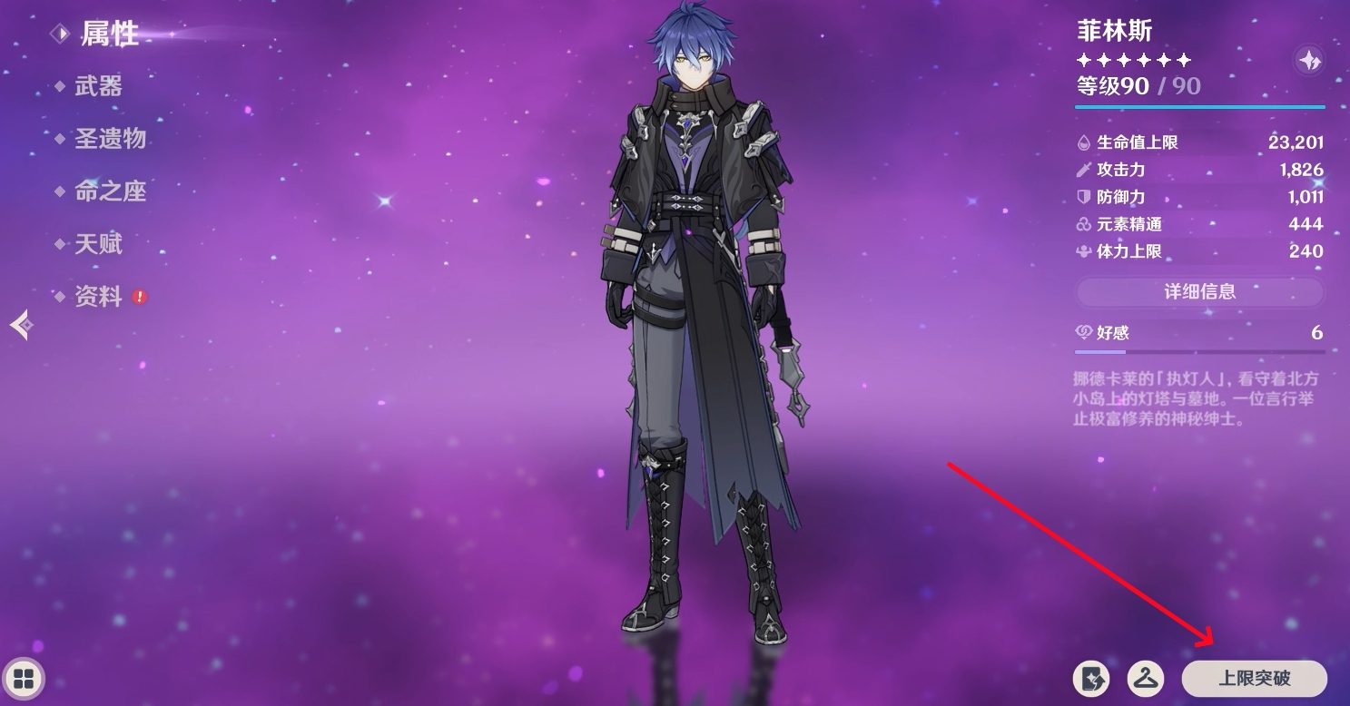 使用无主的命星的操作流程十分简便。进入角色界面后,选定任意一名90级角色,在右下角即可看到“上限突破”选项,点击后便可进入突破页面进行操作。由于游戏中存在等级压制机制,低等级角色面对高等级敌人时输出会被削弱,因此建议优先为主力输出角色配置此道具,以消除伤害压制并提升基础战力。其次,适用于依赖基础数值强化辅助能力的角色,如班尼特、芙宁娜等增益型辅助,以及需频繁触发元素反应的角色,例如梦见月瑞希。在主力阵容突破完成后,若有剩余道具,再考虑分配给其他角色。