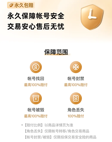 第三,多种交易保障。除了交易安全险之外,平台还上线了诚心卖和包回收等。诚信专职卖家缴纳了保证金,获得更多展示机会,值得买家信赖,账号交易更可靠。