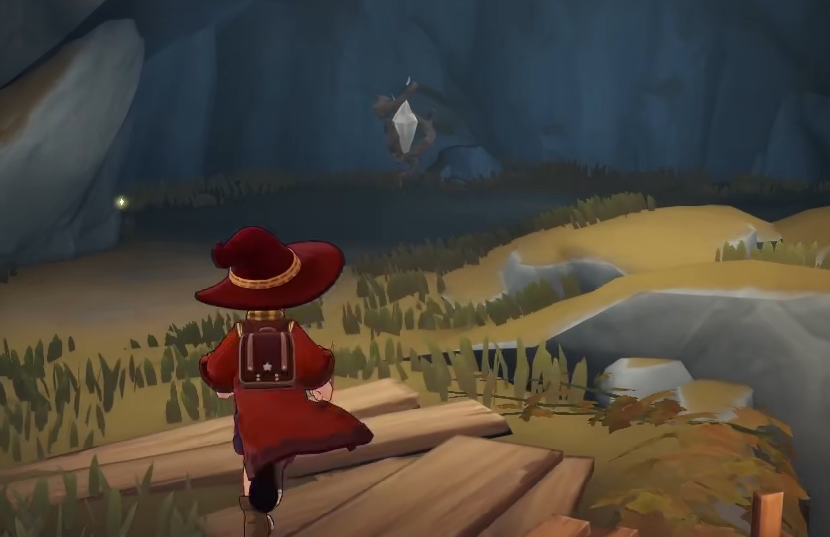 在视野左下角可以发现一排木板结构,并有一位NPC站立附近。此时召唤飞行坐骑,朝该方向飞行。落地后会发现一处洞口,进入洞穴内部,在左侧可见一架木质梯子。攀爬而上,沿通道前行,最终便可抵达信仰者之村的核心区域——魔力之源所在位置。