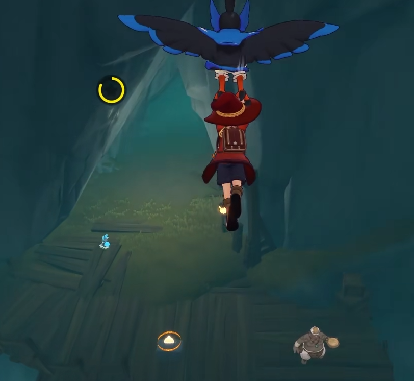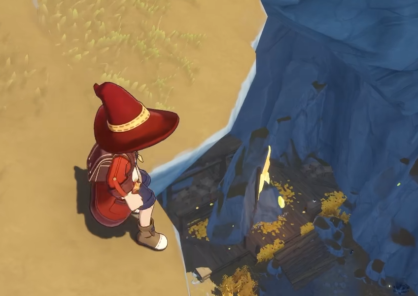 站在晨曦山上,面向西侧前进,途中会看到一块显著的大石。继续前行,前方会出现一个深坑。此时需站在坑边,向左下方观察。