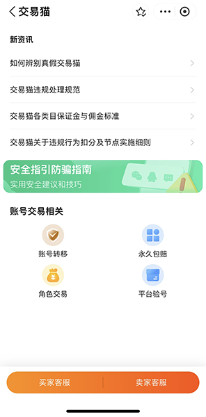 第三,官方客服全天上线。专职客服24小时在线,不仅能解答交易和平台使用规则问题,还能协助交易,进行账号信息验证和督促账号交易顺利进行,协助发送账号和密码等。