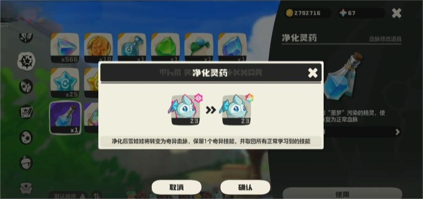完成捕捉后,若要实现净化,需要用到“净化药水”。这种药水可通过炼金术制作获得,所需材料为愿力灵碎×5。该道具来源于放生噩梦系精灵,玩家可将不再需要的精灵进行放生以积累资源。所有材料可在炼金大锅中合成净化药水,且无次数限制。制作完成后,直接对目标精灵使用即可立即生效。