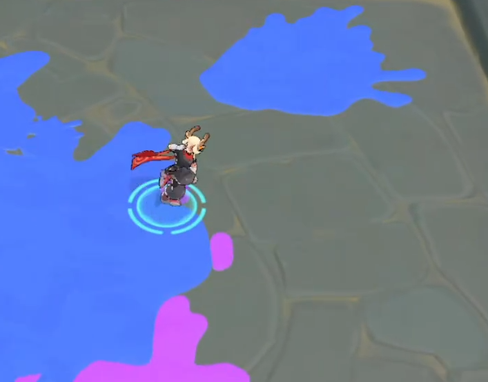 游戏中最具特色的机制是“涂鸦”系统,这也是决定胜负的关键环节。对战过程中,地图会持续刷新敌方单位,击败后会在地面留下颜料痕迹。最终判定胜利的标准为哪一方占据的颜料区域更大,这种将战斗成果转化为领土控制的设计极大增强了策略对抗性。