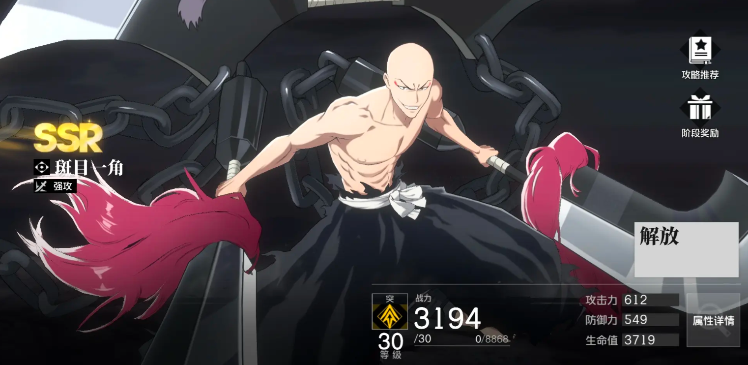 当成功击败敌人后,一角会积累25点灵压,并进入激昂状态,在此状态下进一步提升其所造成的突袭伤害。第二个被动则专注于卍解期间的表现:每次释放普攻分支技能时,都将为下一次使用的“爆裂龙吟”提供额外的暴击伤害增益,实现精准爆发。