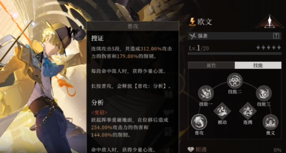 作为格斗系近战单位,武装侦探欧文的设计理念区别于传统输出型角色。他融合了攻击、防御与辅助三大要素,形成独特的综合战斗风格。其核心机制之一是“搜证标记”——通过普通攻击对敌人施加该状态。一旦被标记的目标倒地,无论由谁造成击倒,全队成员均可恢复一定耐力值。这一设定极大增强了队伍在连续作战中的持久力。