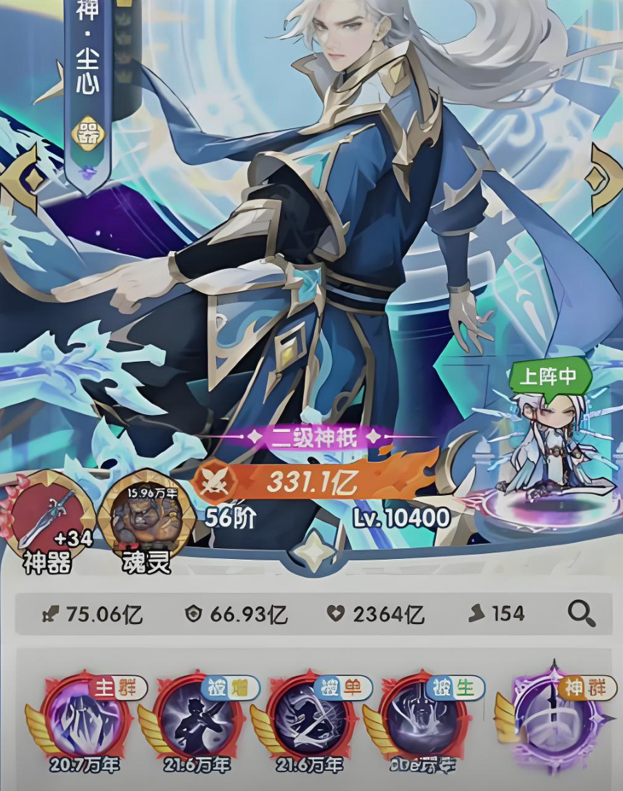尘心的核心被动技能源于“人剑合一”,是一项具备多重增益效果的关键技能。当该技能触发后,角色将进入持续三回合的神化状态,期间防御力会下降50%,但同时获得50%的伤害加深加成,并对敌方单位施加持续性伤害。若配合合适的魂环配置,还可额外附加吸血、破防以及减益抗性降低等强化效果,极大提升战场压制力。