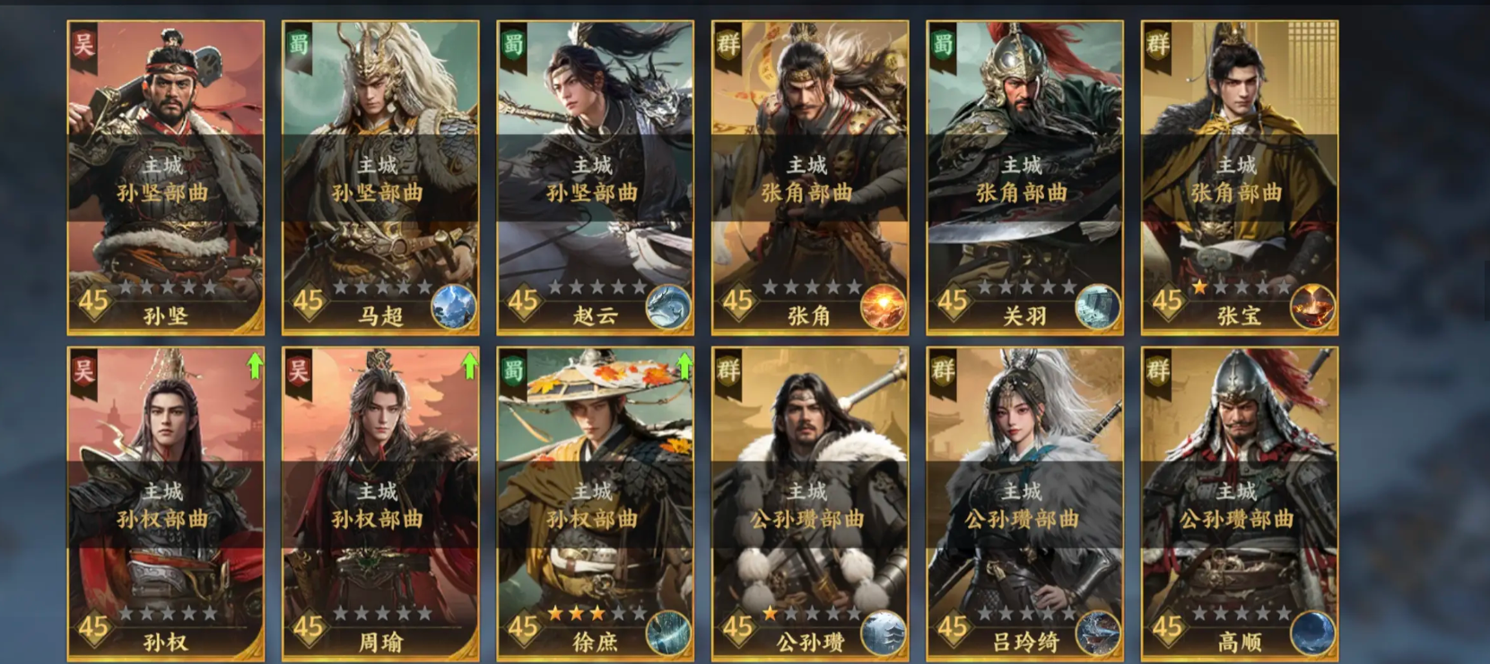 此阵容延续了高频普攻流的构建逻辑,三名武将皆拥有触发追击的能力,确保持续输出。赵云依旧承担提升全军移速的角色,为队伍提供战术灵活性;马超凭借移速差强化普攻伤害的机制得以充分发挥;关银屏则能提升整个部队的普攻伤害水平,形成叠加增益。若资源允许,也可将马超替换为张星彩,或用孙坚替代关银屏,根据实际武将获取情况灵活调整。