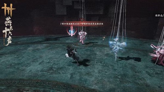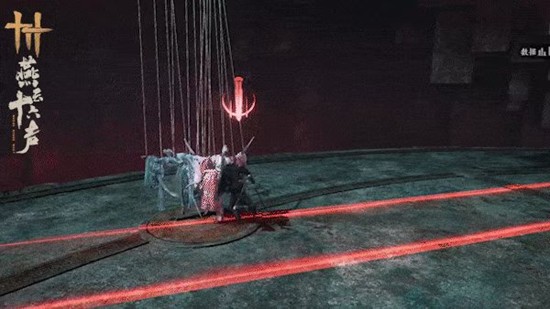 3、场地出2只小怪,boss架势被卸空后会掉4把武器,用了就消失,拿武器的站在小怪连上会有斩杀交互,用完打两下小怪就死了