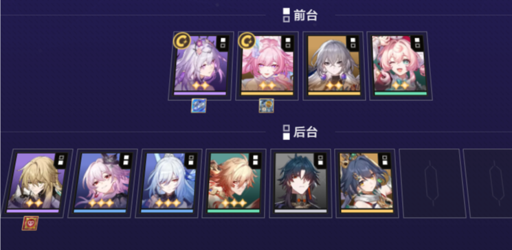 最终阵容组成:遐蝶、昔涟、布洛妮娅、风堇、罗刹、长夜月、镜流、万敌、刃、云璃