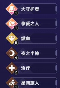 羁绊组成:1大守护者、1挚爱之人、8燃血、4夜之半神、2治疗、1星间旅人