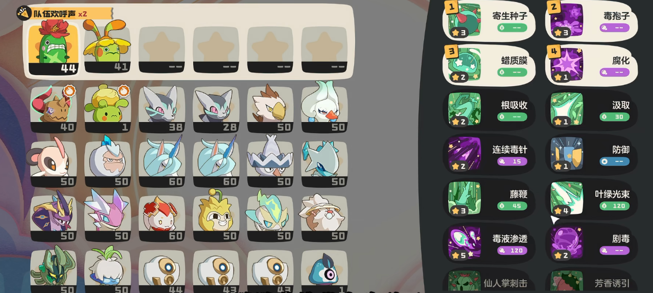 奇丽花则推荐配置光能聚集、丰饶、寄生种子和纤维化。若首回合遭遇火鸡类敌人,建议起手释放寄生种子建立回复优势,再用纤维化削弱敌方输出,结合丰饶实现持续作战与能量循环,提升整体续航能力。