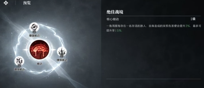 斑目一角的核心优势在于持续增伤的被动体系。其被动技能“绝佳战技”可在周围存在存活敌人时提升突袭伤害,最高叠加至15%。这意味着在敌人密集的战斗环境中,他的输出能力会显著增强,非常适合混战局势下的高效清场。普通攻击命中目标后可附加“创痕”状态,为后续技能提供额外伤害加成。此外,每次成功击败敌人后,角色将进入“激昂”状态,进一步强化突袭类技能的伤害输出,形成越战越强的正向循环。