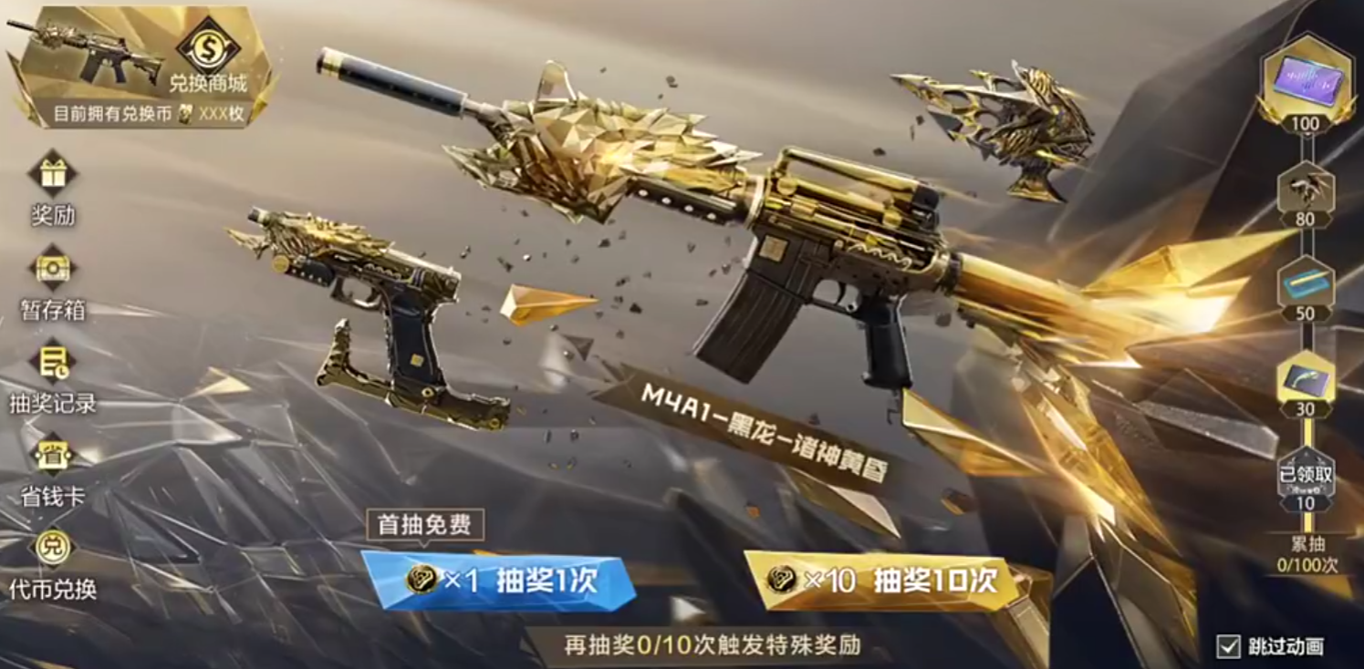 本次夺宝首抽免费,后续每进行10次抽取将触发一次特殊回馈机制,额外赠送一定数量的兑换币,可用于在兑换商店中换取心仪道具。其中最受关注的当属M4A1武器,该枪械具备战绩自定义保存功能,弹道稳定性极佳,受击上扬数值仅为0.2,拥有出色的抗干扰能力。同时配备超快换弹机制、专属消灭图标、独特的枪火特效以及专属展示动作,整体表现极具实战优势,是提升战斗体验的理想选择。
