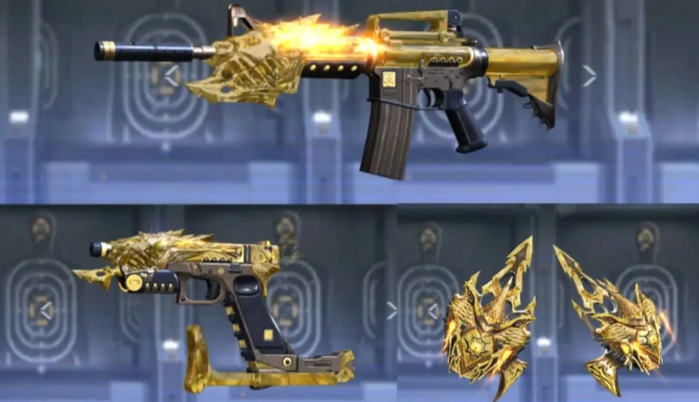 此外,奖池中还包含一系列“诸神黄昏”主题皮肤,该系列为史诗品质,设计精美且深受玩家青睐。例如巴雷特-毁灭在装备皮肤后,整体呈现出暗金色光泽,外观低调却不失奢华感,枪身采用镜面材质处理,光线折射效果显著,视觉层次分明。