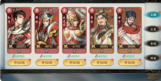 吴国阵容围绕“灼烧”机制展开,常用搭配为太史慈+孙策+周瑜+鲁肃+甘宁。该体系的特点是对目标每秒造成其最大生命值1%的伤害,效果最多叠加五层,持续三秒,总伤害潜力可观。周瑜、甘宁与鲁肃为主要的灼烧施加者,而太史慈和孙策负责触发联动反应,打出成吨的真实伤害。尽管该阵容缺乏硬控手段,但凭借持续掉血与高上限输出,在攻坚场景如国战攻打扬州时表现尤为突出,配合周瑜的五段技能可显著提升破防效率。