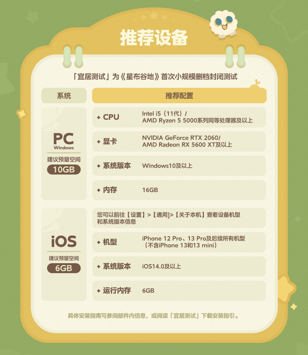 「宜居测试」为《星布谷地》首次小规模删档封闭测试。