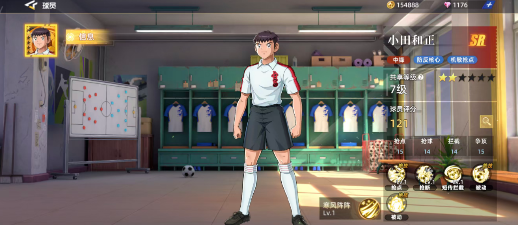 小田和正是游戏前期即可获取的SR级中锋,其角色定位清晰,擅长在防守反击体系中发挥作用。整体表现灵活且具备一定战术价值,后期还可凭借技能机制成为抢点进攻的关键人物。基础评分为121,在同品质球员中处于中等偏上水平。具体能力方面,抢点15、抢球14、拦截14、争顶15,显示出他在多个关键属性上的均衡发展。六维图中抢球数值略低,仅为14,因此在实战中应尽量规避这一短板,但其余能力已足以支撑他在SR层级中的竞争力。