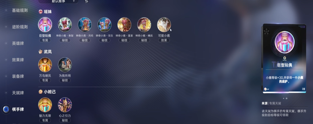 属于支援型棋手,施放技能后可随机获取一张1至5阶的“转瞬”英雄卡,仅限下回合使用,否则自动消失。每经历四回合可发动秘技,使场上随机五名英雄等级提升4级,快速改变战局节奏。六星天赋“开战传送”可在战斗开始时随机投放1名100级英雄入场,此数量随回合推进逐轮递增,最多可达3名,极大影响中期布局。