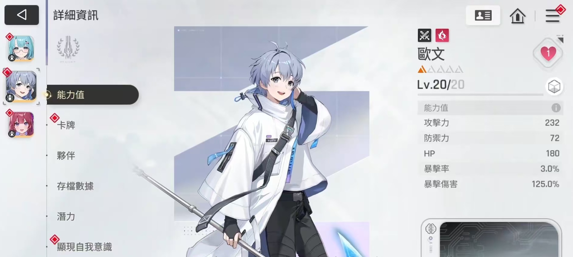 欧文是一名四星稀有度的风系角色,主要担任队伍中的主力输出位(DPS)。在先前的测试版本中,其实力稳居T1梯队,无论是面对前期推图还是后期Boss挑战,都能发挥稳定的高伤害输出能力。他的自我意识技能名为“狂风暴击”,能够打出高达250%的攻击伤害,并为自己生成等量数值的护盾,兼具输出与生存双重优势。而其崩溃卡牌“逃避现实”则带有随机性效果,可能触发意外但有利的战局转折。