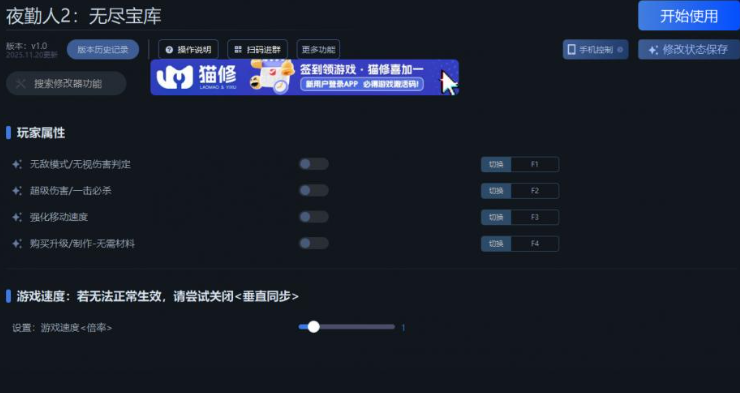 2、功能项出现开启失败或是无法正常生效的情况时,优先检查当前游戏版本与修改器的对应版本是否一致,并尝试重新启动游戏和修改器。