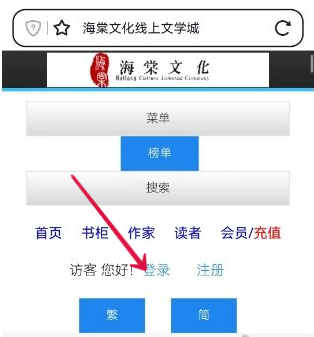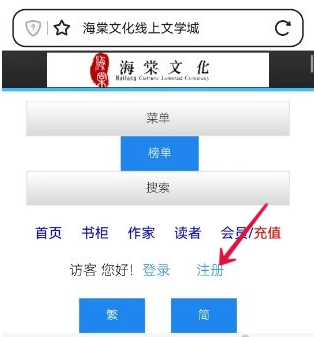 1.进入海棠文学城网站,点击首页"注册"按钮。
