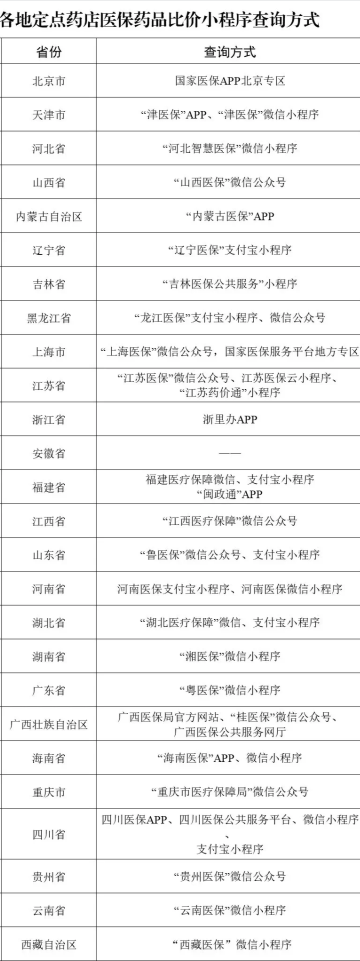 通过支付宝或微信直接搜索即可访问。全国覆盖范围包括29个省(自治区、直辖市)及新疆生产建设兵团,提供药品价格比对、药店定位等核心功能。具体省份入口如下: