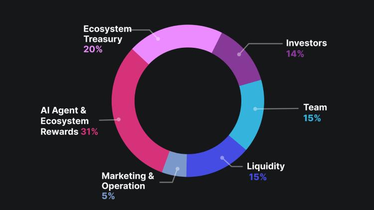 AIO代币分配中71%用于生态发展,包含AI代理奖励、流动性支持和金库储备。剩余29%分配给团队和投资者,采用12个月锁定期+24个月线性释放机制。代币核心用途包括: