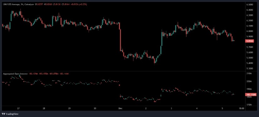 Uniswap价格跌至5.81美元,未平仓合约量维持在1.83亿附近