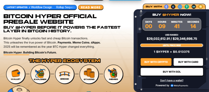 Bitcoin Hyper($HYPER)预售迄今已筹集超2900万美元,代币当前价格为0.013375美元,显示出交易者的强劲需求。