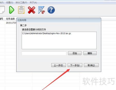 2. 在文件选择界面中,定位到需要分析的日志文件所在目录,选中目标文件后进入下一步设置。