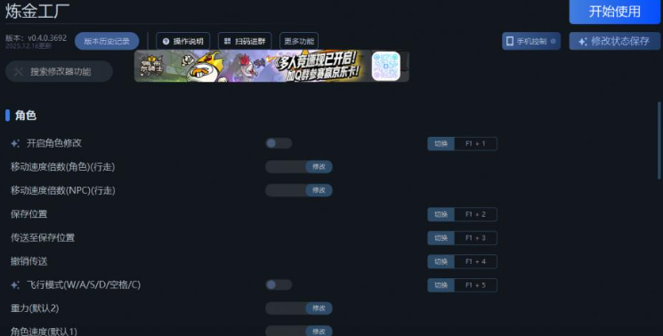 2.开启修改器主项再使用相应子项(主项如"开启...修改"/无主项则不用开启)。