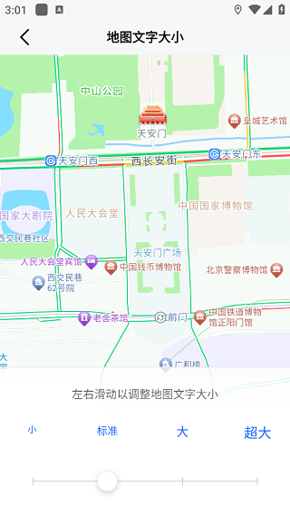 5、最后在“地图文字大小”界面中,就可以通过拖动滑块来调整文字大小了。