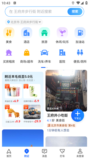 1、可以查看自己附近的美食、酒店、景点等等。