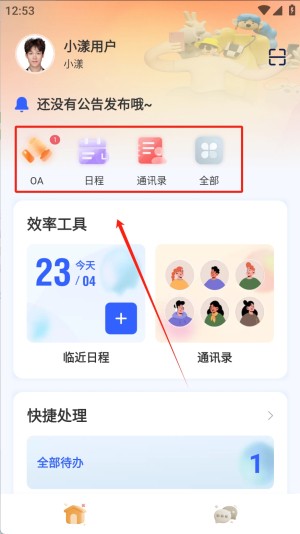 3、日常办公操作。处理待办事项、参与项目协作、发起审批流程等常规工作。