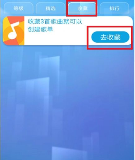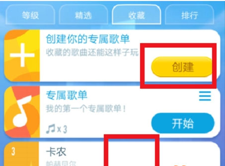 在钢琴块主界面上框,有收藏的白色字样,如果收藏了任意三首,就可以创建歌单。而在每首音乐中只要感兴趣就可以点击心状物标,即可以完成收藏。