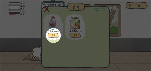 8、当左上角的小猫健康度不良时,玩家可以点击洗猫来为小猫进行洗漱;
