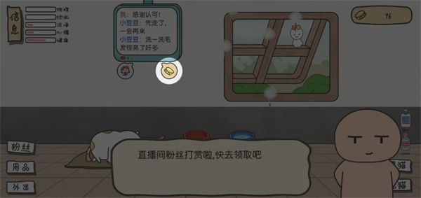 1. 游戏操作简单,玩家可以通过滑动、点击等操作来管理直播和照顾猫咪。
