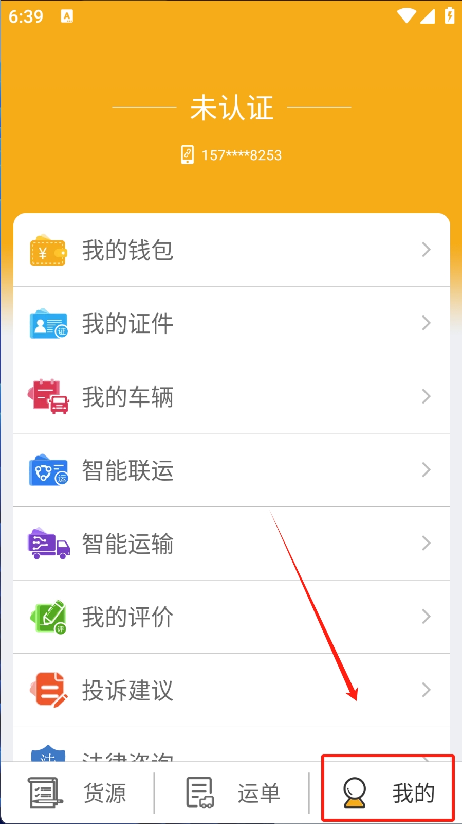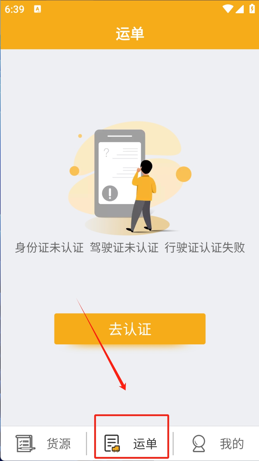 3、在运单页面,点击底部导航栏中的“运单”图标,查看当前的运单状态。