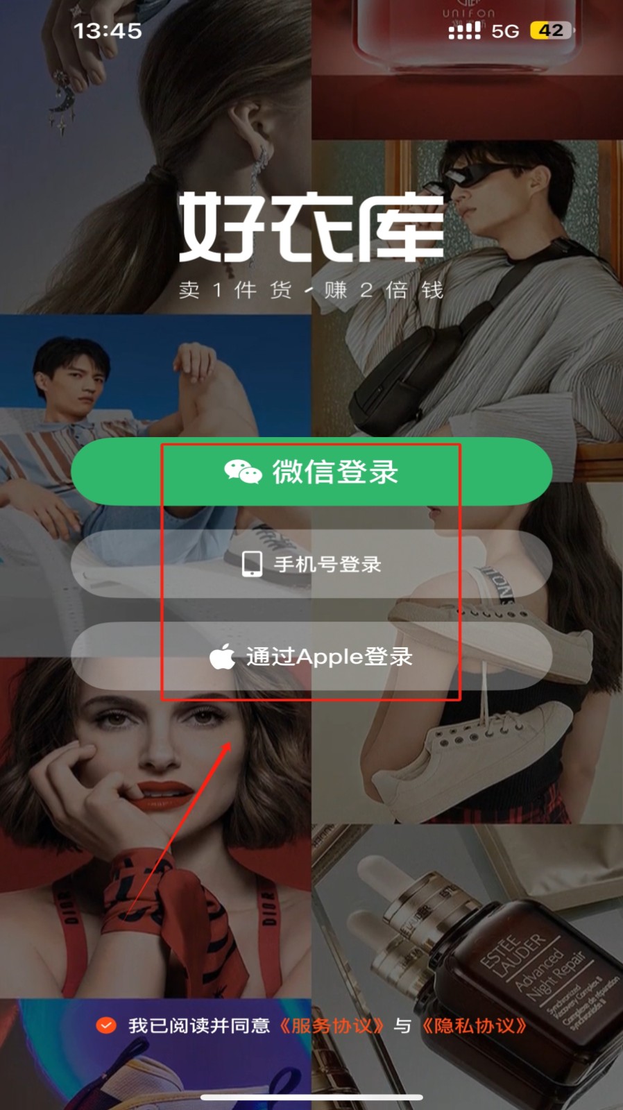 2、选择微信、手机号或Apple账号登录,开始使用好衣库Pro。