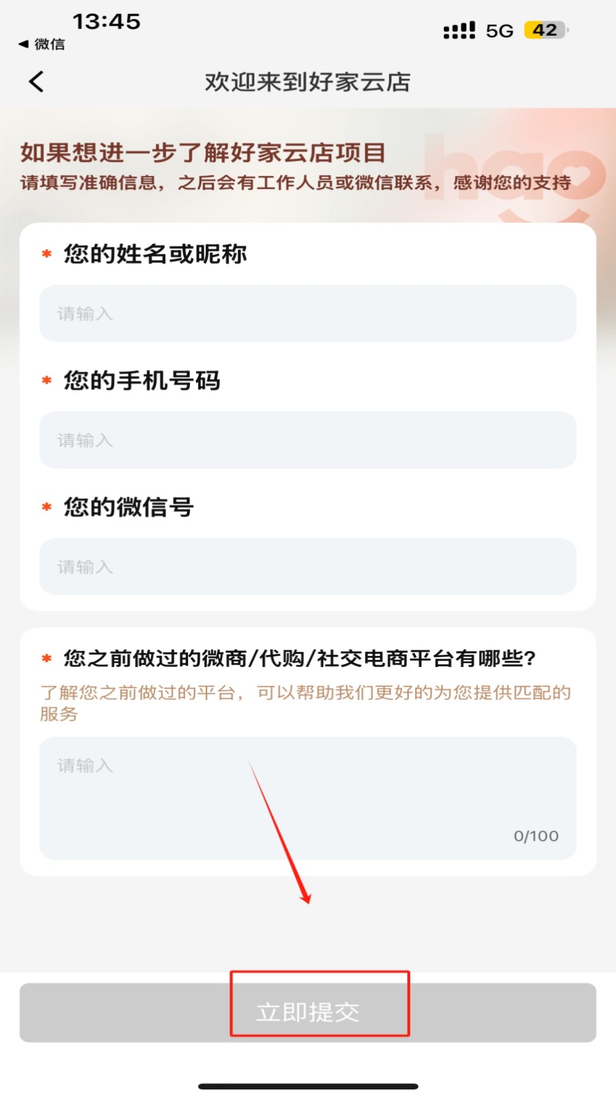4、填写姓名、手机号、微信号等信息,点击“立即提交”完成申请。