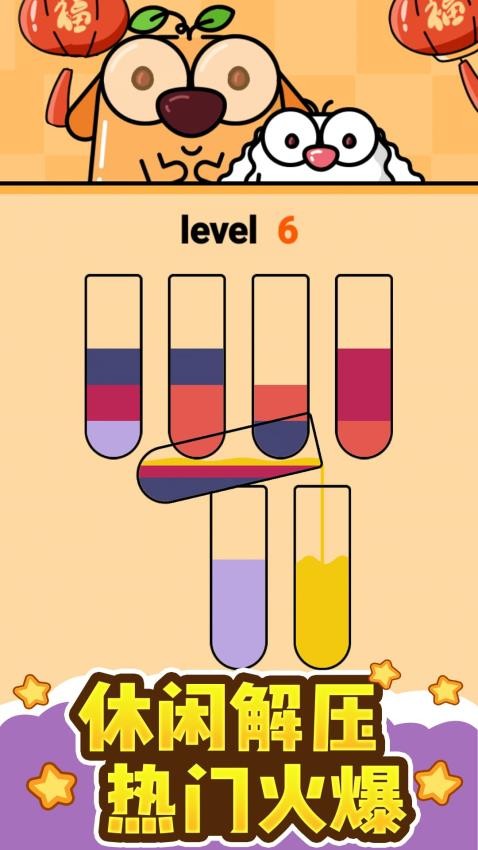 这款色彩排序游戏将流体物理与逻辑解谜完美结合,既保留了益智游戏的烧脑特质,又加入了视觉解压元素。从简单分类到复杂层析,每个关卡都充满策略性。直观的倾倒操作让新手快速上手,而精妙的关卡设计则带来持久挑战乐趣。无论是想放松心情,还是锻炼思维能力的玩家,都能获得满足。持续更新的主题关卡和特殊玩法,让色彩冒险永葆新鲜活力。