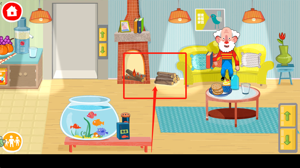 1、打开游戏,选择一层房间,可以任意探索,比如可以点击木头放在壁炉里。