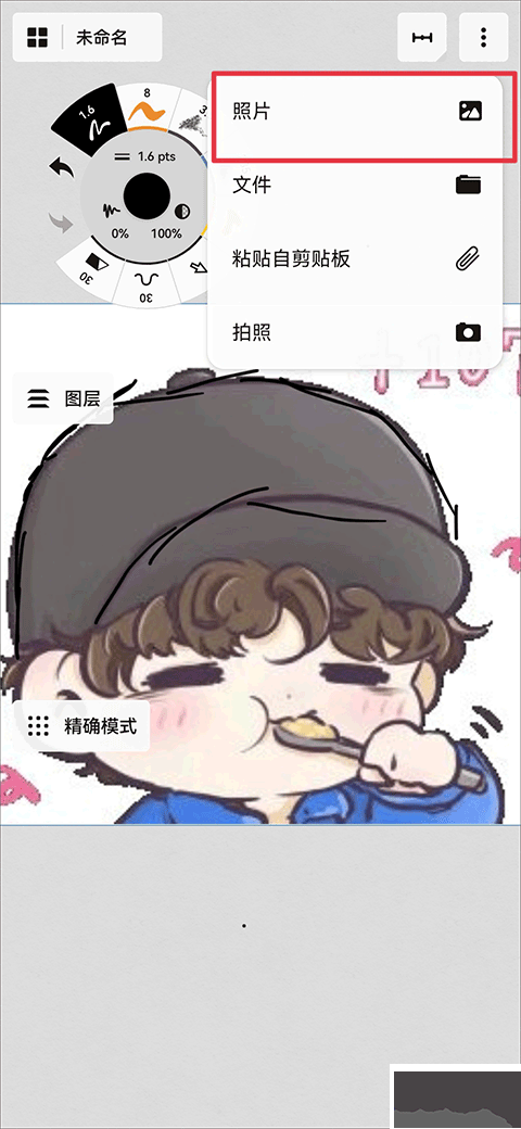 4、在绘画界面可以随时导入图片,点击右上角三点