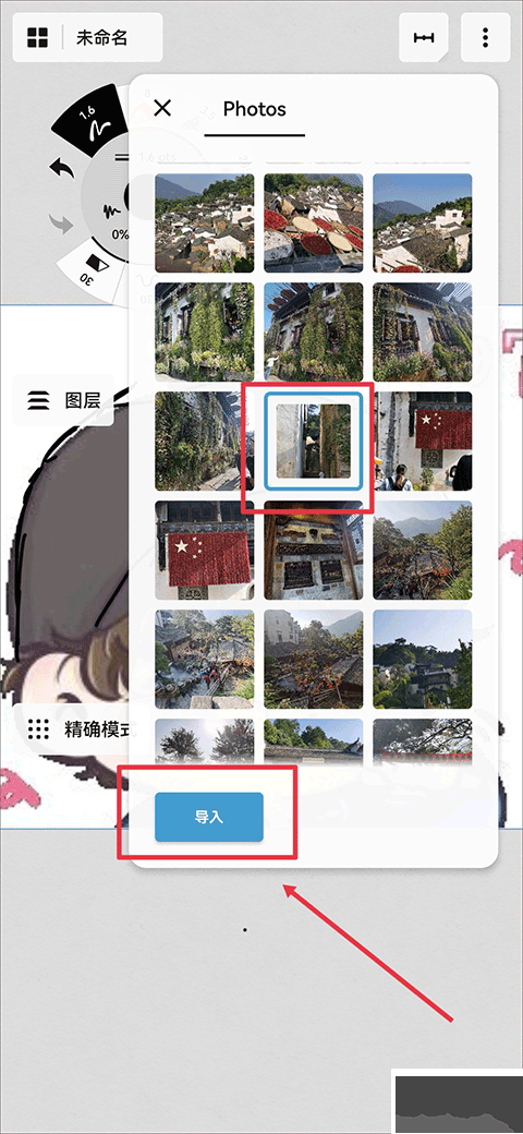 7、最后在相册中选中图片,并点击导入就可以啦
