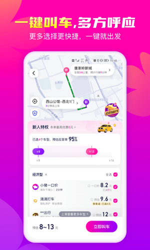 花小猪打车去广告版是一款便捷好用的出行打车软件。用户可以在软件中快速输入或者开启定位选择等候地和目的地,一键呼叫多个品牌的车辆,空闲车辆会快速对接响应。软件每日提供多种优惠福利活动,让用户能够以高性价比享受便利的出行服务。其提供的全程安全保障,让用户能够放心出行。